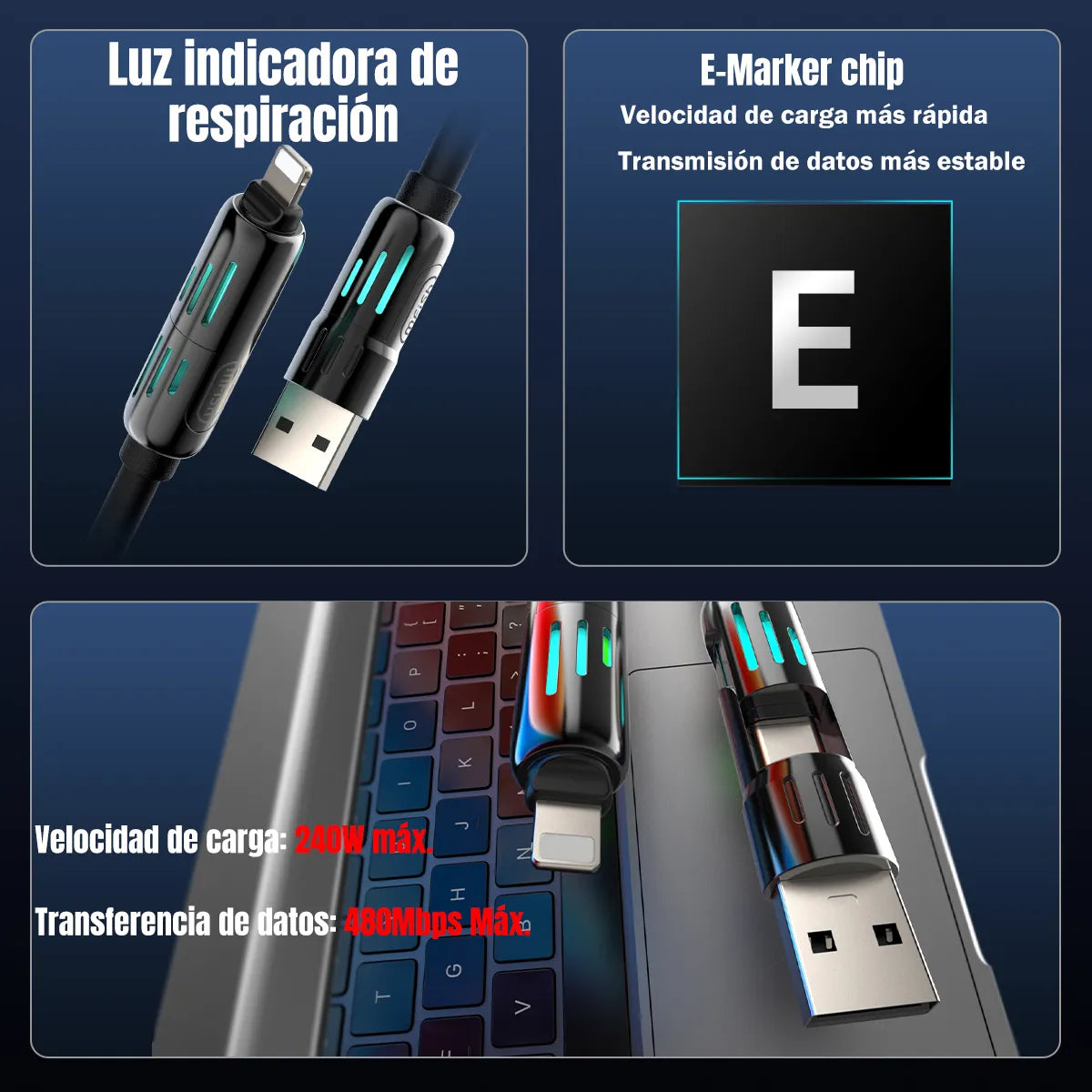⚡ Cable MFish™ 4 en 1 de Carga Rápida 240W