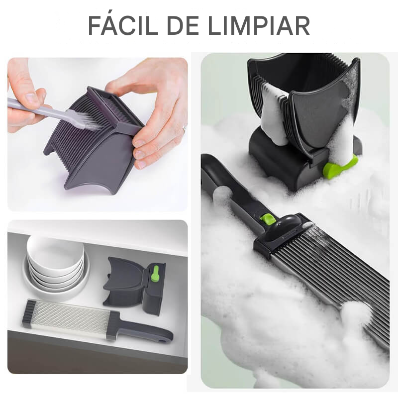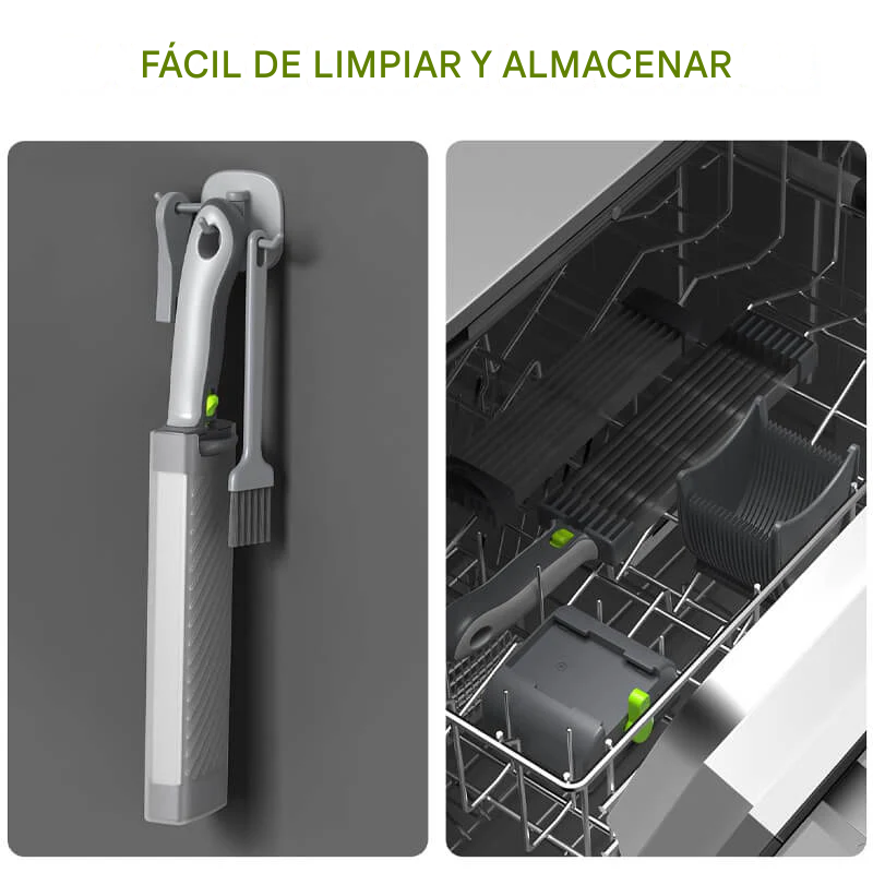 El juego de cortadora de carne está hecho de acero inoxidable apto para uso alimentario, es resistente a la oxidación y fácil de limpiar. Es apto para lavavajillas e incluye un cepillo de limpieza para un mantenimiento sin esfuerzo. Su diseño elegante y compacto y la opción de montaje en pared ahorran espacio en la cocina.