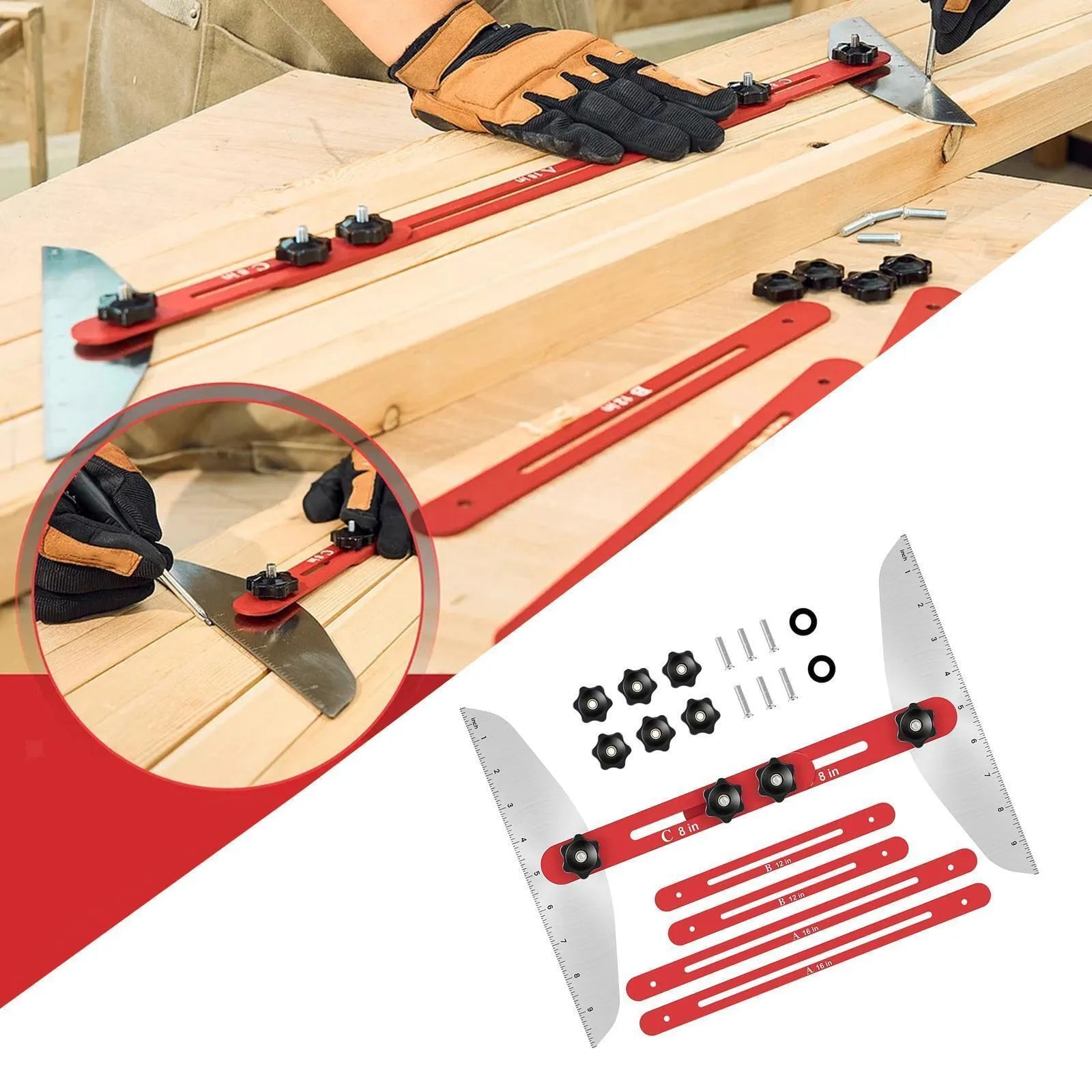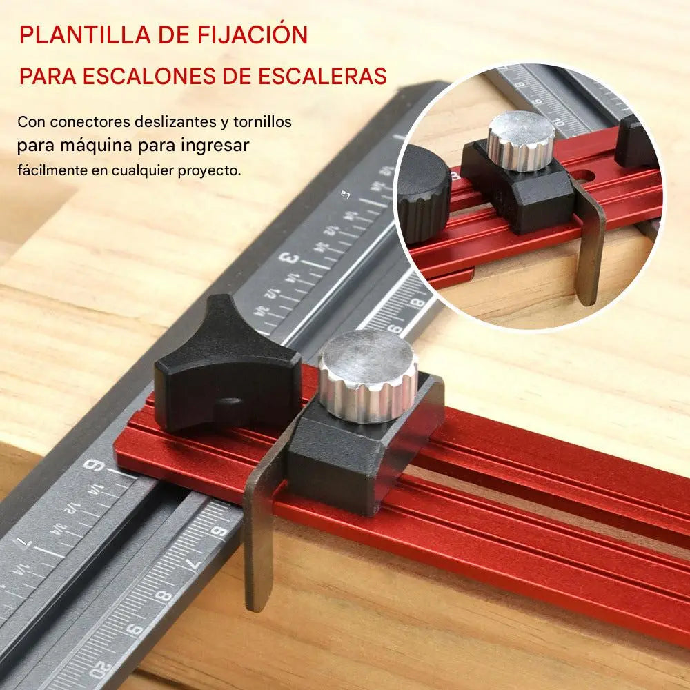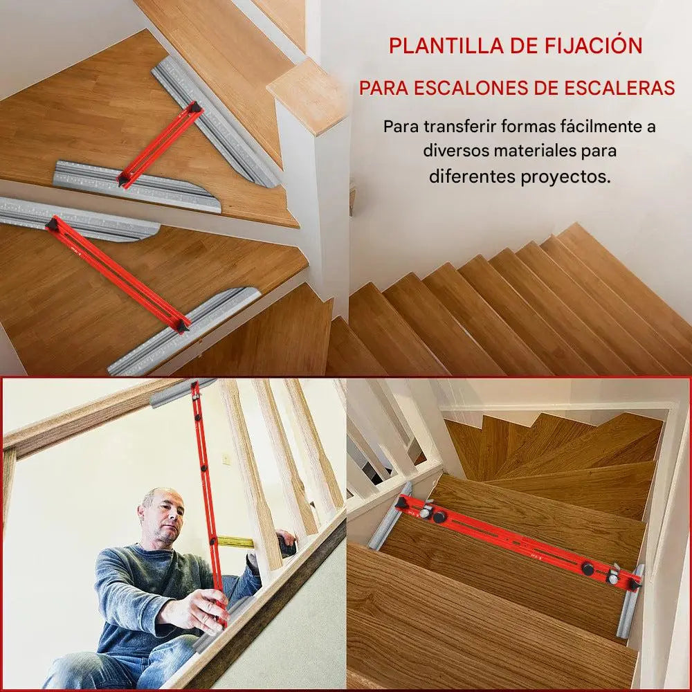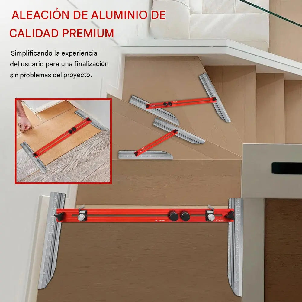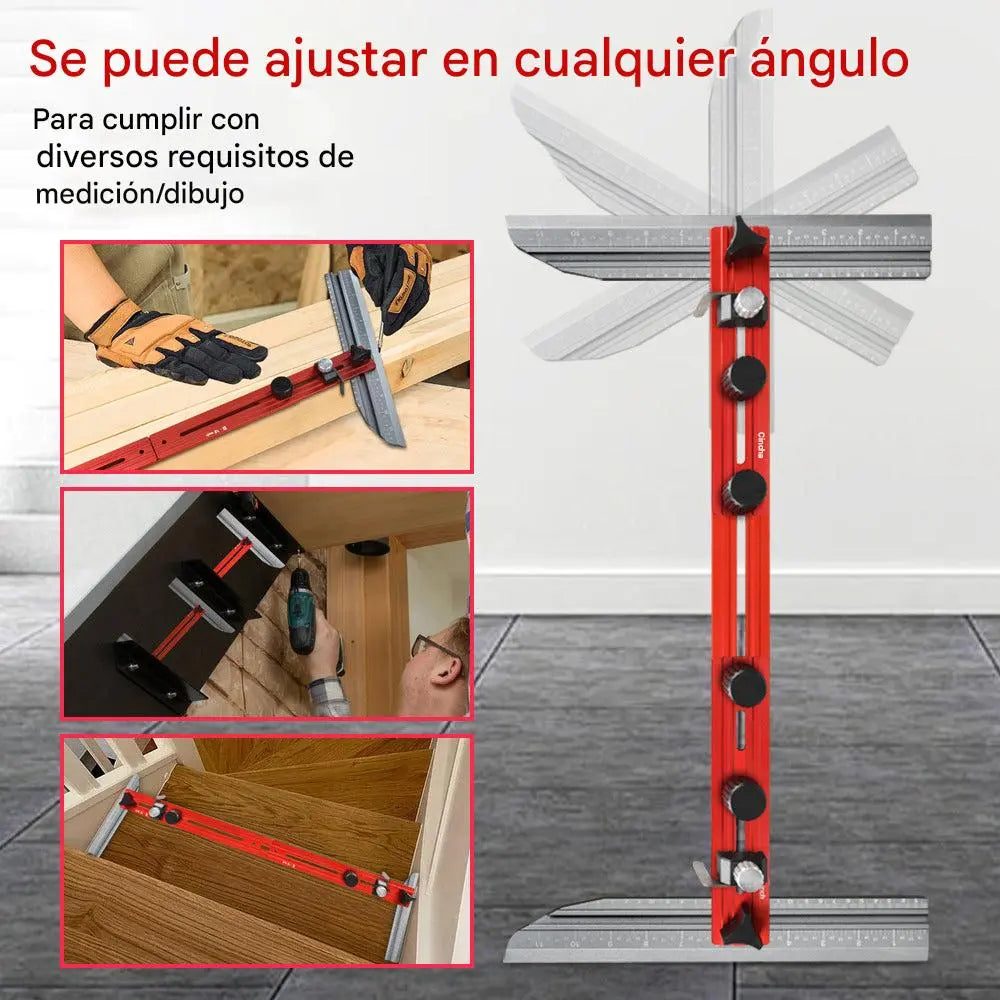 Fácilmente ajustable a cualquier ángulo, esta herramienta satisface todas sus necesidades de medición y dibujo, garantizando precisión para escaleras, gabinetes y muebles personalizados.