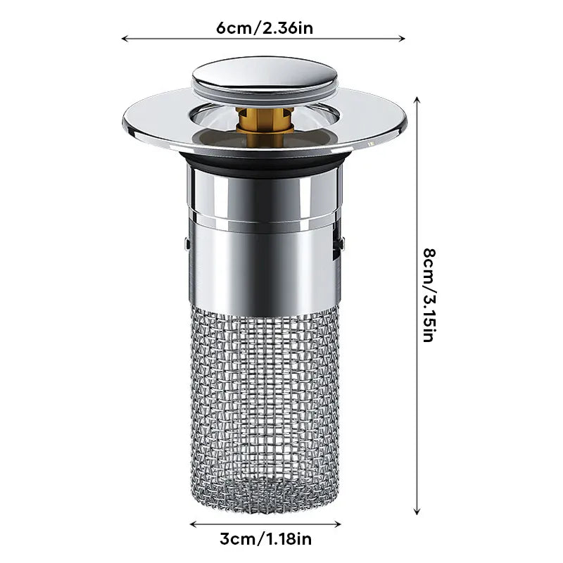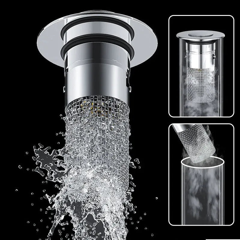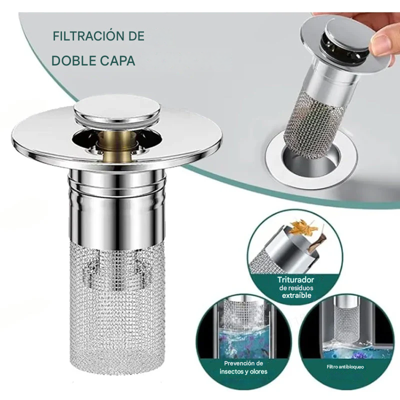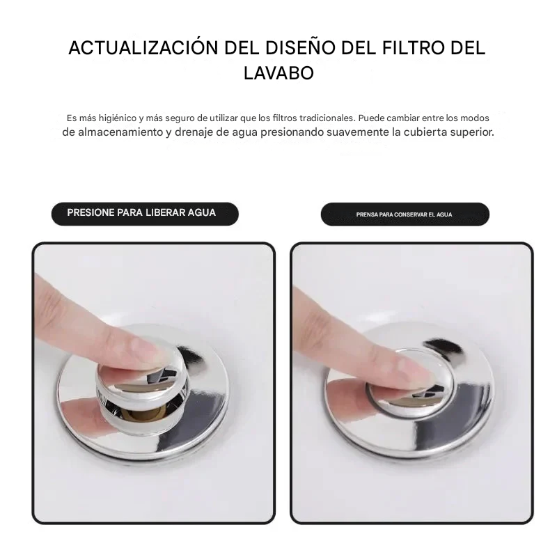 A diferencia de los desagües de botón comunes, este tapón de desagüe tiene una canasta antiobstrucciones en el interior que recoge cuidadosamente los pelos y evita que el desagüe se obstruya.
