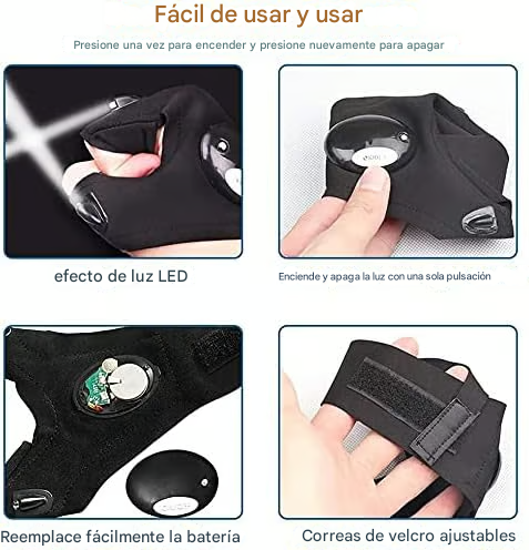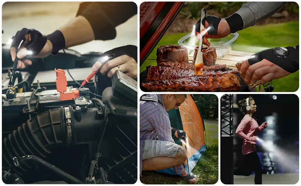 Los guantes con linterna son dispositivos útiles para los manitas, los amantes de los coches, los electricistas, los ingenieros, los mecánicos, los fontaneros, los conductores de camiones y los repartidores cuando trabajan en espacios oscuros. Los guantes con luz también son útiles para pescar, correr al aire libre, acampar, hacer senderismo y pasear al perro por la mañana temprano o al anochecer.