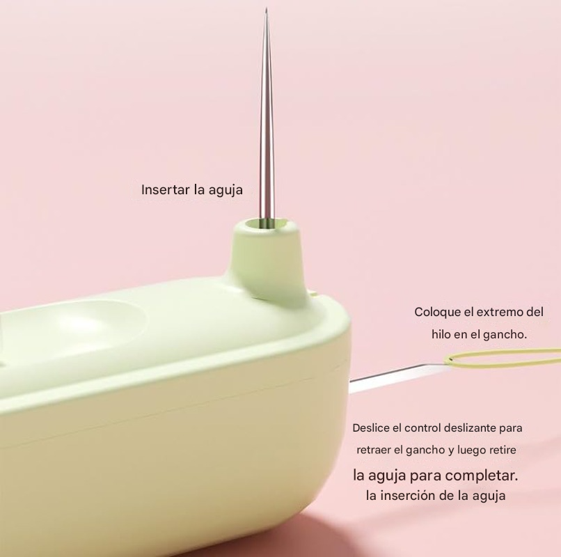 Imagínate nunca más luchar para enhebrar una aguja, evitando la frustración de dañar tus telas al deshacer costuras.